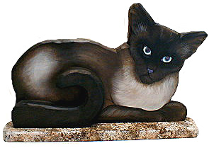 Crouching Cats are available in any color or breed. Small $25.00 for stock; $30.00 for custom Approximately 9" wide x 6" high, no base Abyssinian American Curl Egyptian Mau Household Pet Himalayan Maine Coon Persian Scottish Fold Siamese Large $40.00 for stock; $45.00 for custom Approximately 15" wide x 12" high on base Household Pet Norwegian Forest Cat Persian Siamese Top of PageAbout Us Testimonials Custom Sculptures Ordering Information Studio Hours & Directions Show Schedule Links E-Mail Us Home © 1999-2009 Elysium Woodcarvings. All Rights Reserved. |
